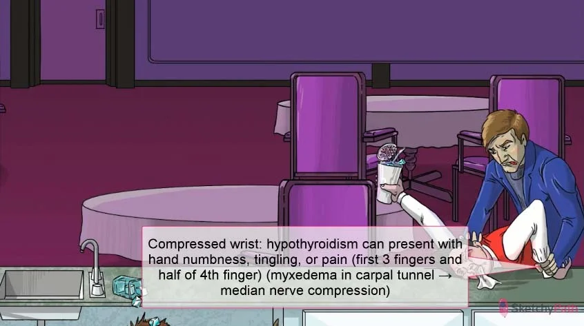 <img src="SketchyMedical 2019-12-30 09-28-54_1566160514431.jpg"><br><div><img src="carpal tunnel syndrome_1566160514431.jpg"><br></div><br><a href="https://dashboard.sketchy.com/study/medical/courses/medical-pathophysiology/units/medical-pathophysiology-endocrine/videos/medical-pathophysiology-endocrine-thyroid-and-parathyroid-hypothyroidism-overview-and-hashimotos-thyroiditis?utm_source=anki&utm_medium=partnership&utm_campaign=february_update&utm_content=medical">Watch Hypothyroidism Overview & Hashimotos Thyroiditis</a><br><a href="https://dashboard.sketchy.com/study/medical/courses/medical-pharmacology/units/medical-pharmacology-autonomic-drugs/videos/medical-pharmacology-autonomic-drugs-parasympathetic-acetylcholinesterase-inhibitors?utm_source=anki&utm_medium=partnership&utm_campaign=february_update&utm_content=medical">Watch Amyloidosis</a>