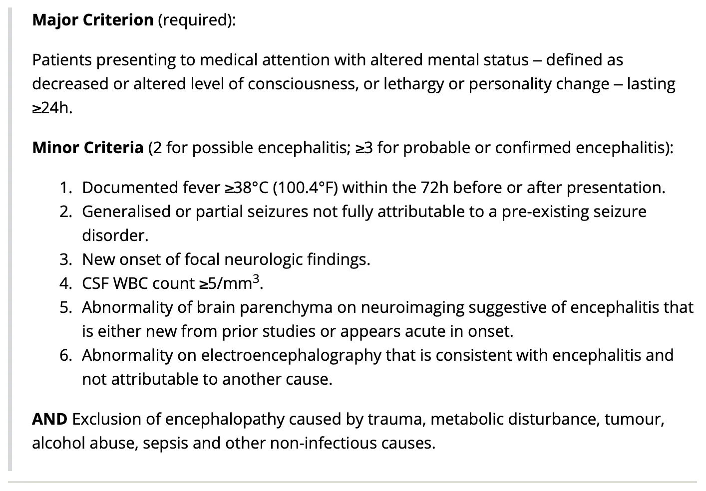 Criteria based Dx for encephalitis