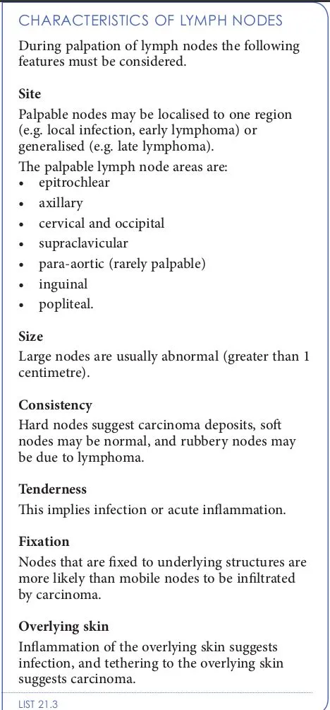 Card's about palpation of lymph nodes in a haem exam