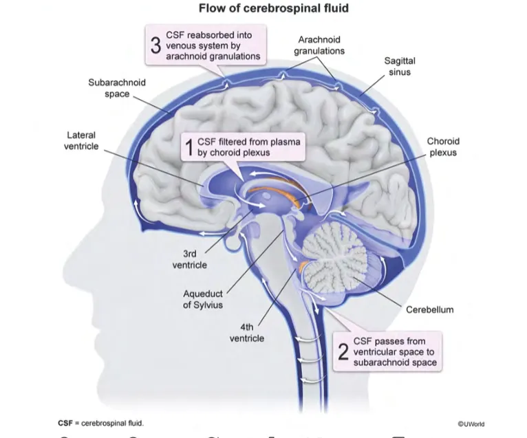 This concept is important because elevated intracranial pressure without an intracranial mass or ventriculomegaly is a commonly tested but often overlooked mechanism. It emphasizes how impaired CSF resorption due to cerebral venous sinus congestion (from conditions like idiopathic intracranial hypertension or cerebral venous sinus thrombosis) leads to increased ICP. This is crucial because 38% of test-takers mistakenly answered "increased CSF production", highlighting a common misunderstanding that this flashcard aims to correct.