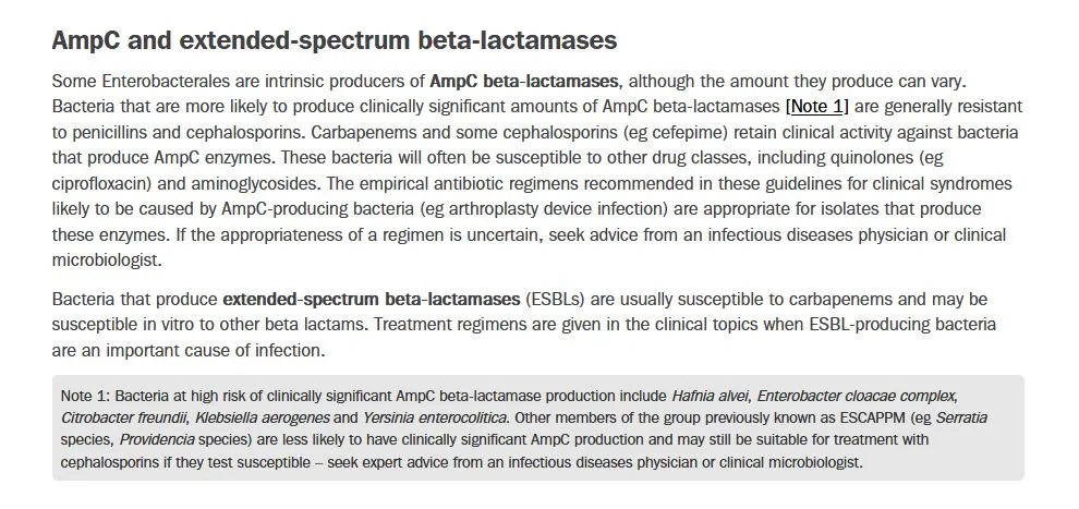 eTG - Managing suspected infection with a multidrug-resistant gram-negative bacterium <a href="https://app-tg-org-au.ap1.proxy.openathens.net/viewTopic?etgAccess=true&guidelinePage=Antibiotic&topicfile=c_ABG_Managing-suspected-infection-with-a-multidrug-resistant-Gram-negative-bacterium_topic_1&guidelinename=auto§ionId=c_ABG_Managing-suspected-infection-with-a-multidrug-resistant-Gram-negative-bacterium_topic_1#c_ABG_Managing-suspected-infection-with-a-multidrug-resistant-Gram-negative-bacterium_topic_1">https://app-tg-org-au.ap1.proxy.openathens.net/viewTopic?etgAccess=true&guidelinePage=Antibiotic&topicfile=c_ABG_Managing-suspected-infection-with-a-multidrug-resistant-Gram-negative-bacterium_topic_1&guidelinename=auto&sectionId=c_ABG_Managing-suspected-infection-with-a-multidrug-resistant-Gram-negative-bacterium_topic_1#c_ABG_Managing-suspected-infection-with-a-multidrug-resistant-Gram-negative-bacterium_topic_1</a> Published/Amended March 2025, Accessed 23 April 2025