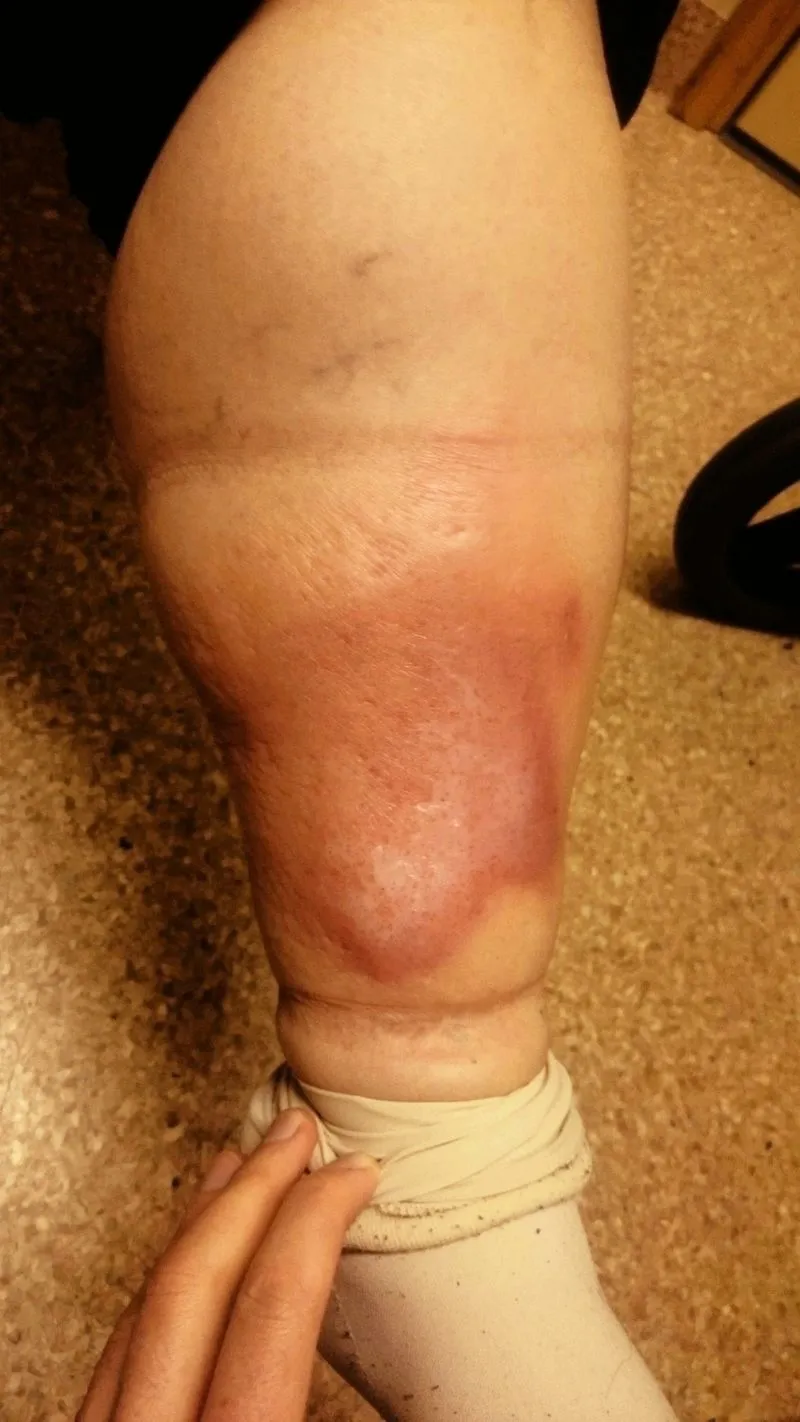 What is the diagnosis?<br><br><img alt="undefined" src="673508821d74dd876ecc1bfd11e4245f.webp" width="557"><br><br>{{c1::Erysipelas}}