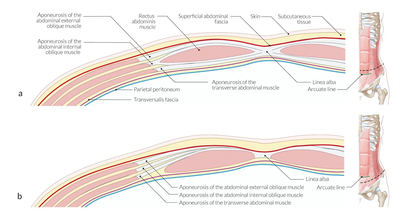 <img alt="Anterior abdominal wall - Knowledge @ AMBOSS" src="09b7d425c62948ddcb38e23d63dc3724.webp" width="1000">