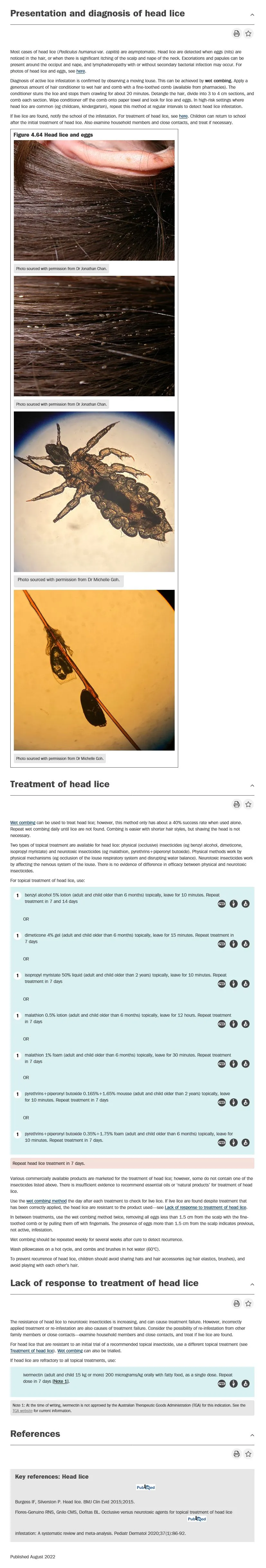 <b>eTG - Head lice <a href="https://app-tg-org.au.eu1.proxy.openathens.net/viewTopic?etgAccess=true&guidelinePage=Dermatology&topicfile=c_DMG_Head-lice_topic_1&guidelinename=auto&sectionId=c_DMG_Head-lice_topic_1#c_DMG_Head-lice_topic_1">Link</a></b><br><img src="735b76398738aebb4c0e41e4a1435410.webp"><b><br><br>eTG - Body lice <a href="https://app-tg-org.au.eu1.proxy.openathens.net/viewTopic?etgAccess=true&guidelinePage=Dermatology&topicfile=c_DMG_Body-lice_topic_1&guidelinename=auto&sectionId=c_DMG_Body-lice_topic_1#c_DMG_Body-lice_topic_1">Link</a><br><img src="64b07683bca00d6f1aa5ae4ea7d0934c.webp"></b><b><br><br>eTG - Pubic lice <a href="https://app-tg-org.au.eu1.proxy.openathens.net/viewTopic?etgAccess=true&guidelinePage=Dermatology&topicfile=c_DMG_Pubic-lice_topic_1&guidelinename=auto&sectionId=c_DMG_Pubic-lice_topic_1#c_DMG_Pubic-lice_topic_1">Link</a><br><img src="4b4d5e4409136e9f0d121f59699de2d4.webp"><br><br>eTG - Scabies <a href="https://app-tg-org.au.eu1.proxy.openathens.net/viewTopic?etgAccess=true&guidelinePage=Dermatology&topicfile=c_DMG_Scabies_topic_1&guidelinename=auto&sectionId=c_DMG_Scabies_topic_1#c_DMG_Scabies_topic_1">Link</a> <br><img src="cab15c0f9f679e55865fc66d7402d1ec.webp"></b>
