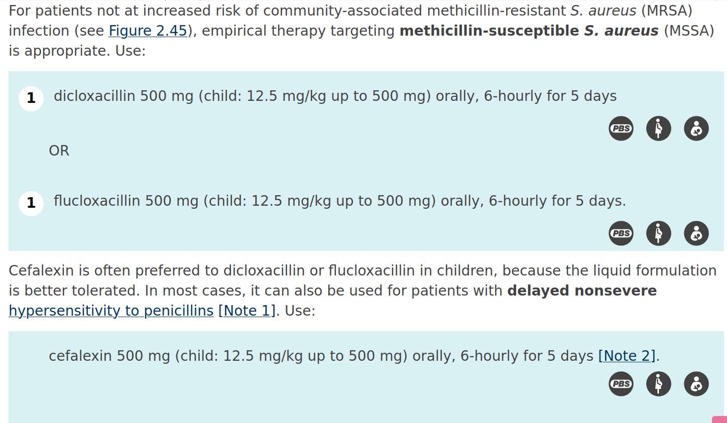 eTG Topic: Boils and Carbuncles: <a href="https://tgldcdp-tg-org-au.eu1.proxy.openathens.net/viewTopic?etgAccess=true&guidelinePage=Antibiotic&topicfile=boils-carbuncles&guidelinename=Antibiotic§ionId=toc_d1e62#toc_d1e62">https://tgldcdp-tg-org-au.eu1.proxy.openathens.net/viewTopic?etgAccess=true&guidelinePage=Antibiotic&topicfile=boils-carbuncles&guidelinename=Antibiotic</a> Published April 2019. Accessed 18/07/2023<br><br>Ellis, Calne, Watson (2016) Lecture Notes. General Surgery, John Wiley & Sons Inc. Chapter 5: Acute Infections