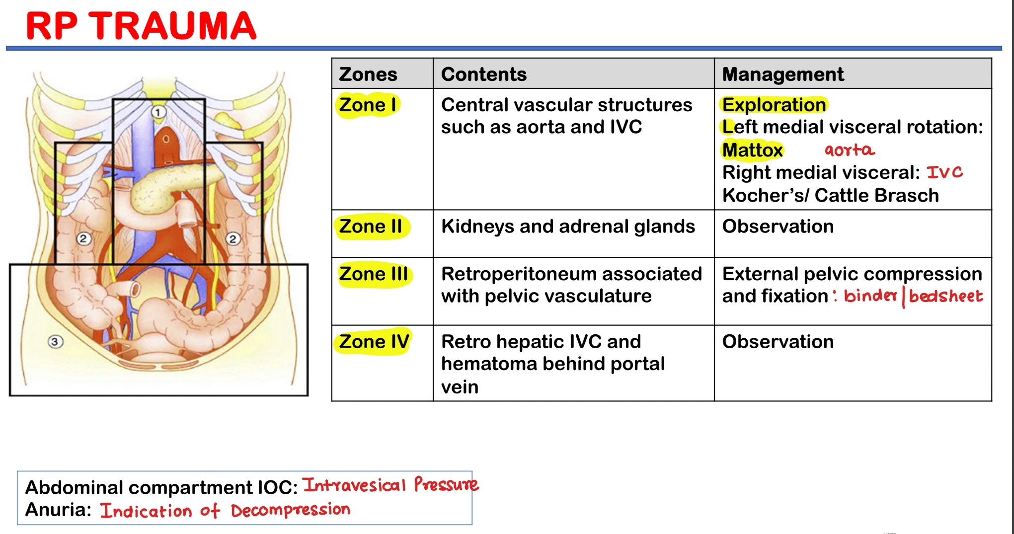 Management of Zone 2 retroperitoneal trauma is {{c1::<u> always observation.</u>}}