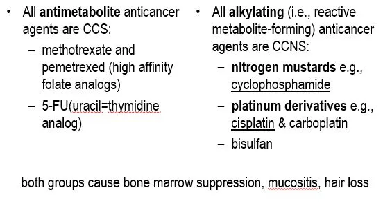 Antimetabolites such as {{c1::methotrexate}} are {{c2::CCS}} agents acting in {{c3::S phase}}.